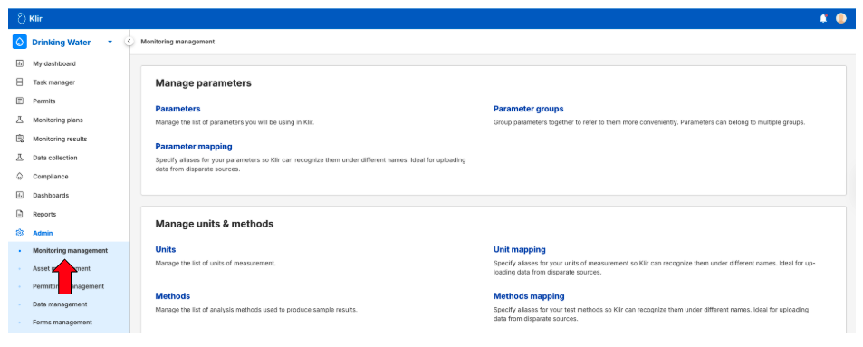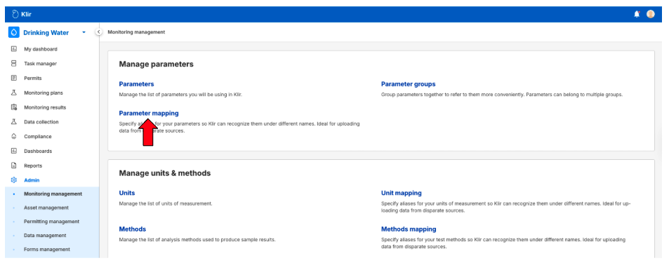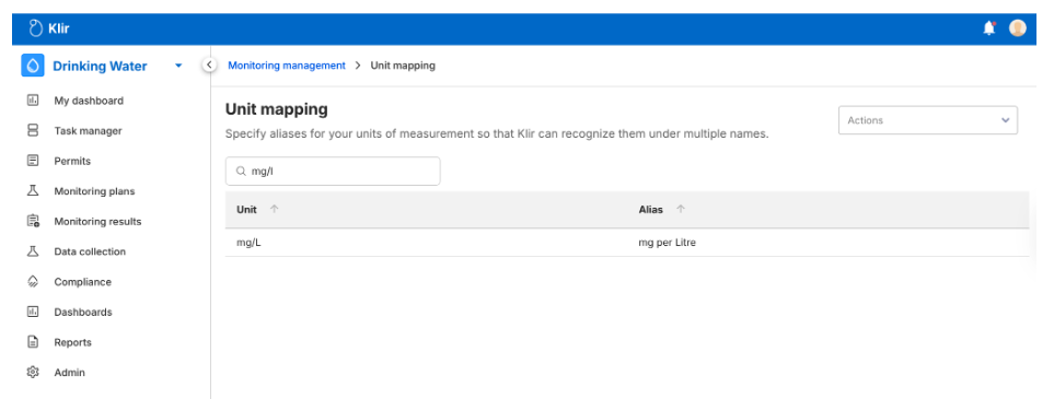 To ensure accurate reporting and consistent data across the platform, Klir maintains a standardized set of parameters, units, methods, and abbreviations within its database. This standardization is essential because clean data in leads to clean data out—when data is consistent at the point of entry, it can be reliably used for reporting, analytics, and downstream processes.