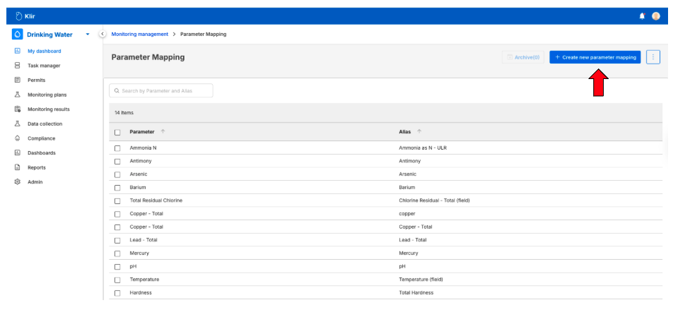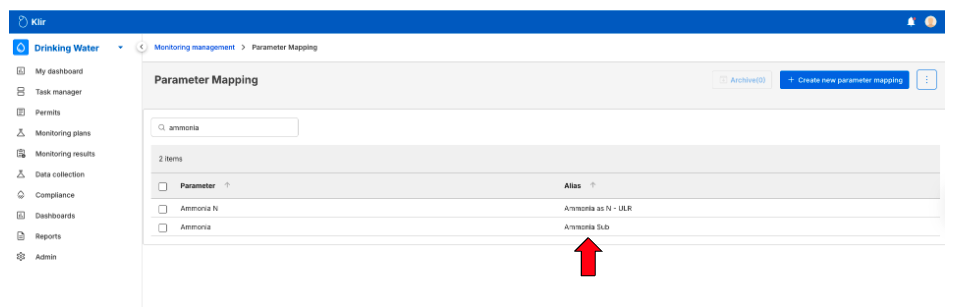 Creating an alias resolves this issue by linking the variation (e.g., “Ammonia as N”) to the standardized parameter (“Ammonia N”). This allows the system to correctly interpret the data and process the import successfully—without compromising data consistency.