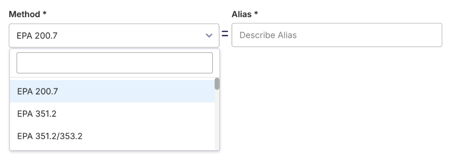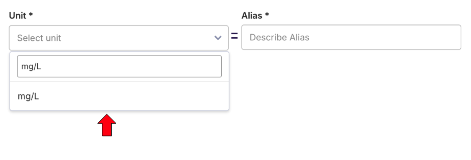 An alias can be created for parameters, units, and methods when working with sample results. Aliases are used when incoming data contains variations in wording or text values that represent the same standardized parameter, unit, or method in the platform.