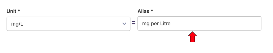In the Alias field, enter the alternate unit name or format (e.g., different abbreviations or spacing).