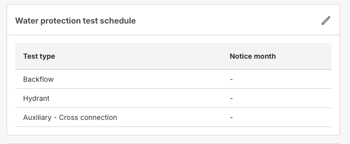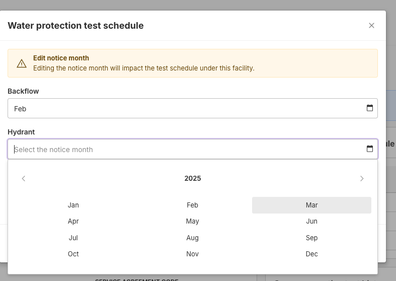 Select a Notice Month for each applicable program — Backflow, Hydrant, and Cross-Connection (Auxiliary).
