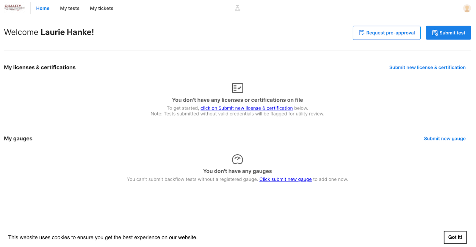 Once logged in with your email and password, you’ll be taken to the Tester Welcome Page.