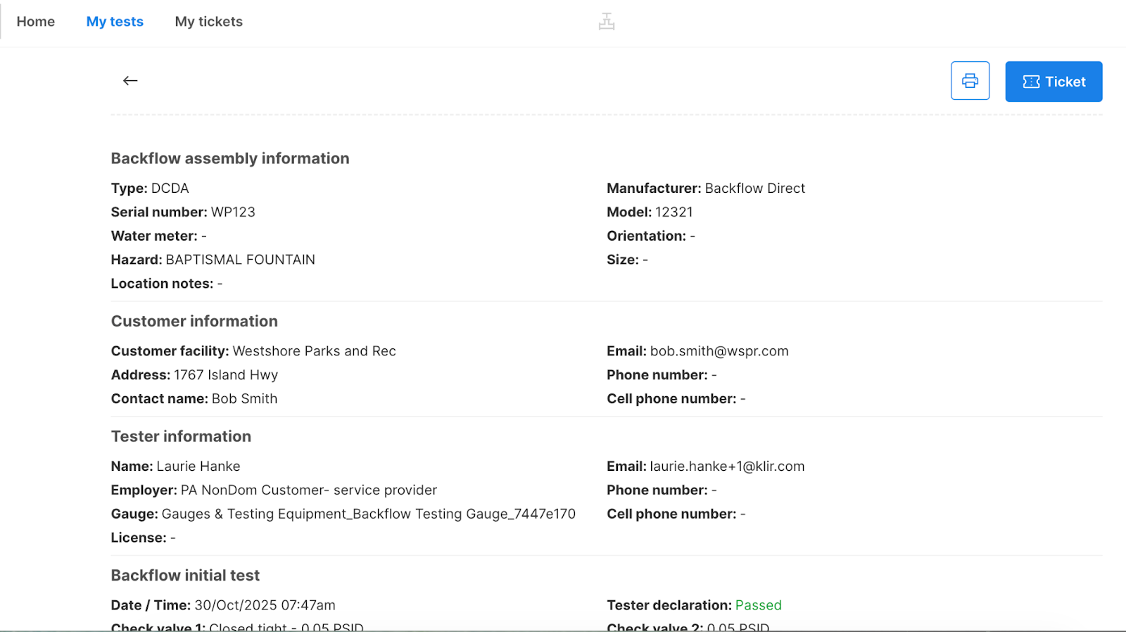 Once submitted, the test record is automatically sent to the Utility for review and cannot be edited by the tester.