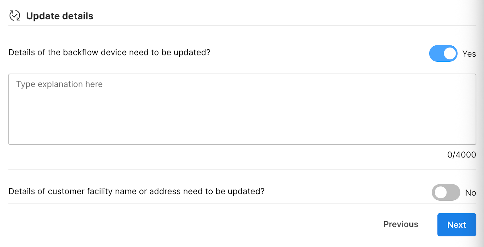 - If any details need to be updated (e.g., customer info, device type), toggle Yes in the Update Details section so the Utility can review.