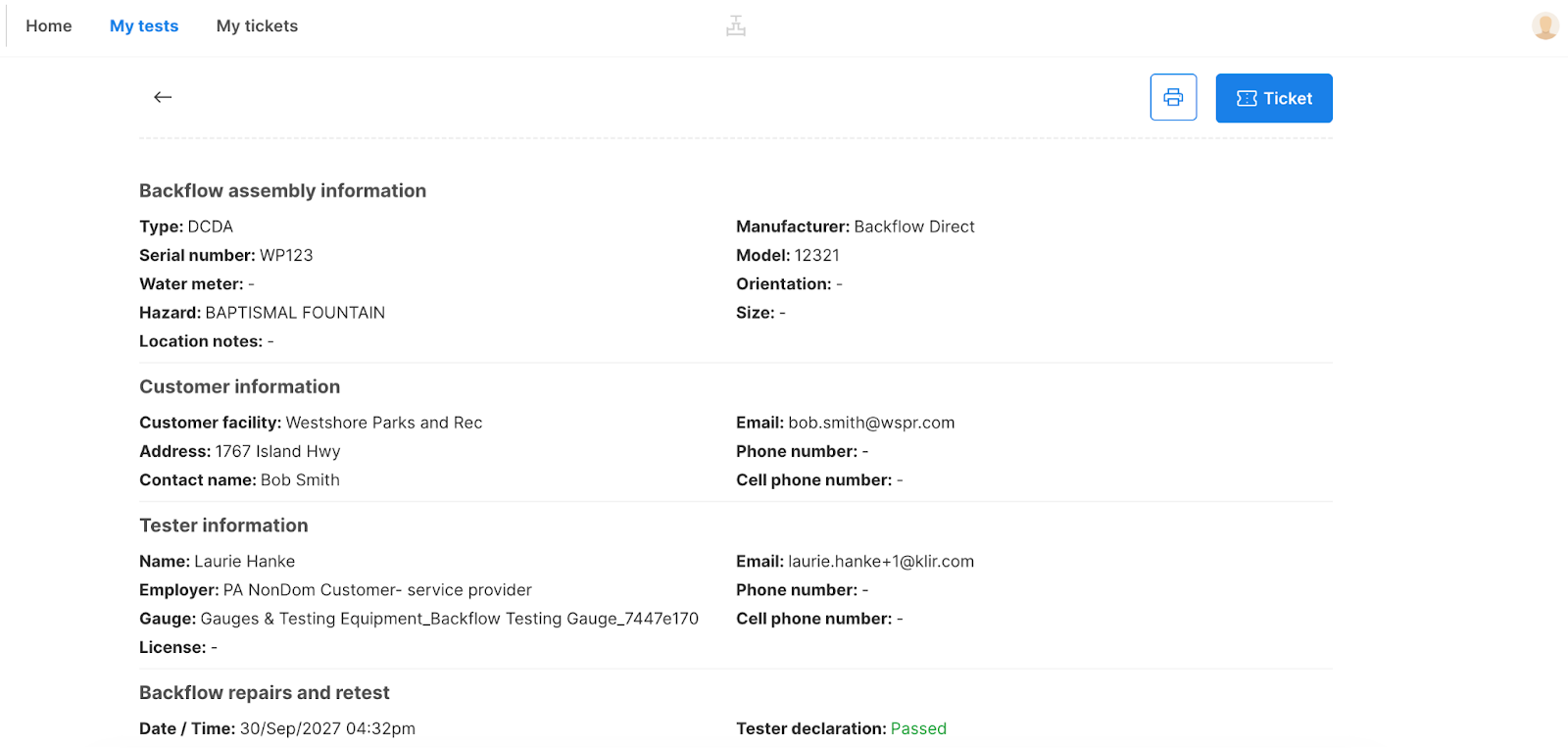 After submission, you will be redirected back to the My Tickets list where your new test will appear.
