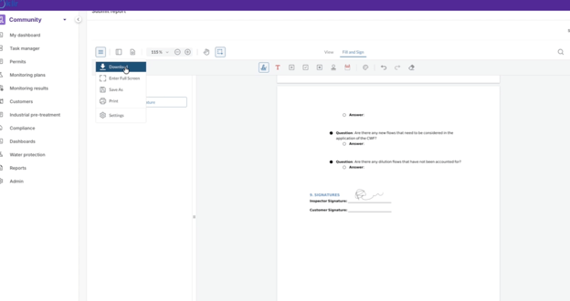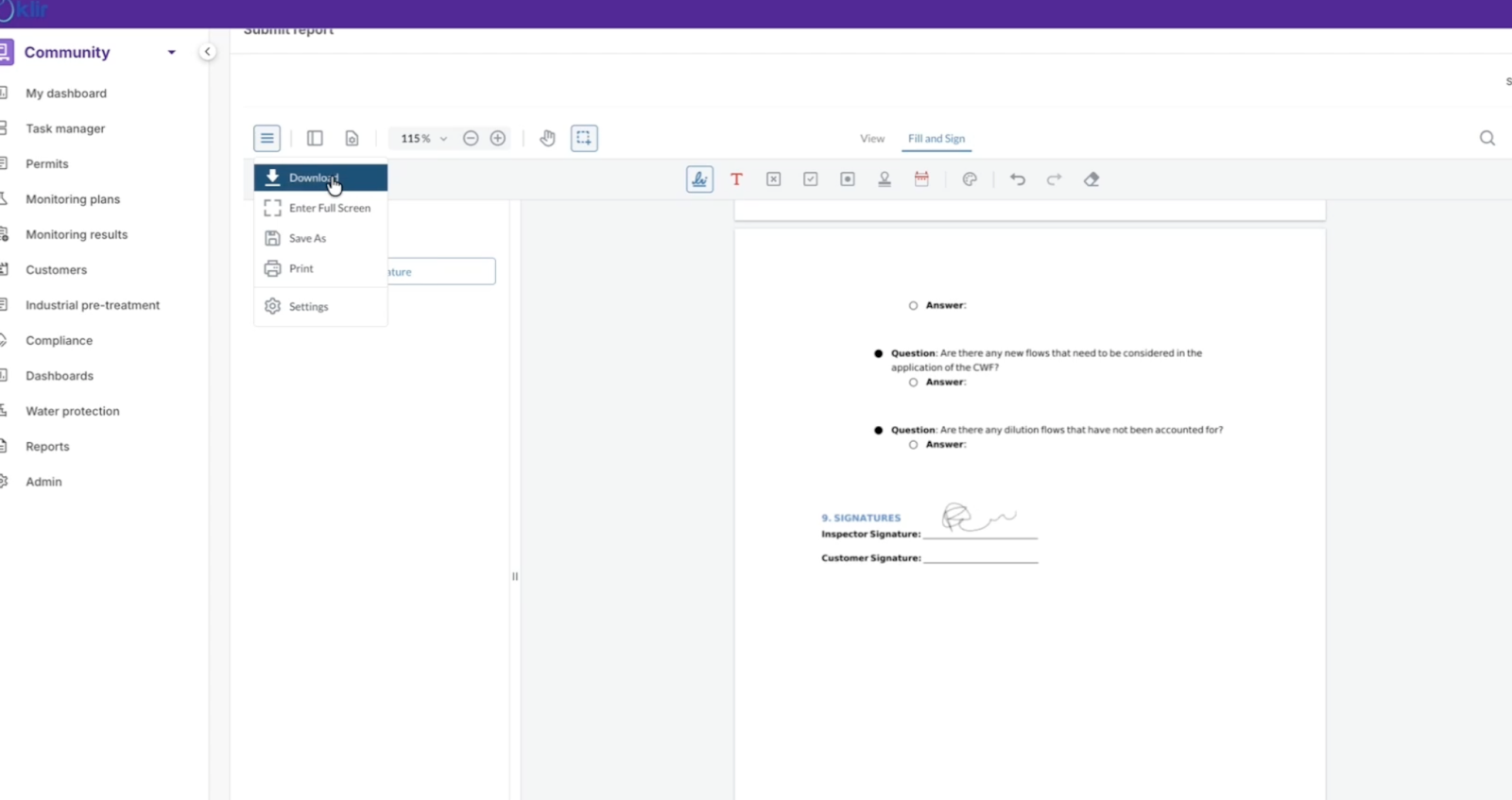 Finalizing the report converts the editable DOCX file into a secure PDF, enabling final actions like signing and sharing.