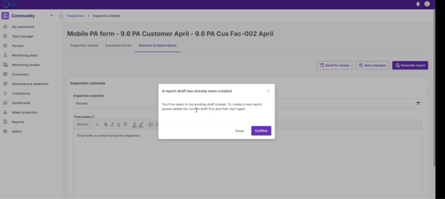 - Save Draft: If the user leaves the screen without clicking on ‘Save as draft’ or before finalizing the report, they will lose any changes made.