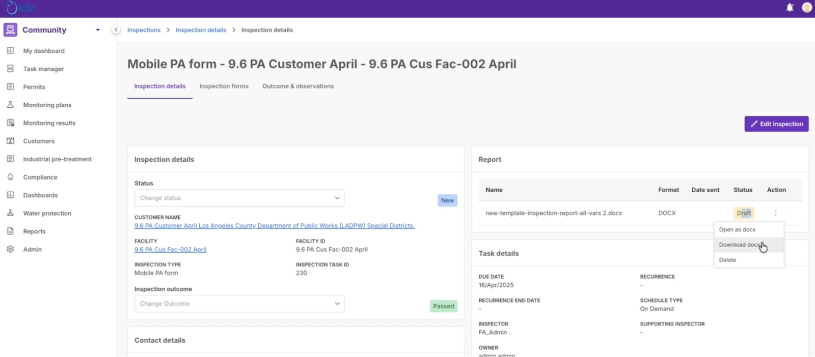 These enhancements give administrators greater control over report templates while providing inspectors with a clear, guided workflow for creating, editing, and distributing inspection reports.