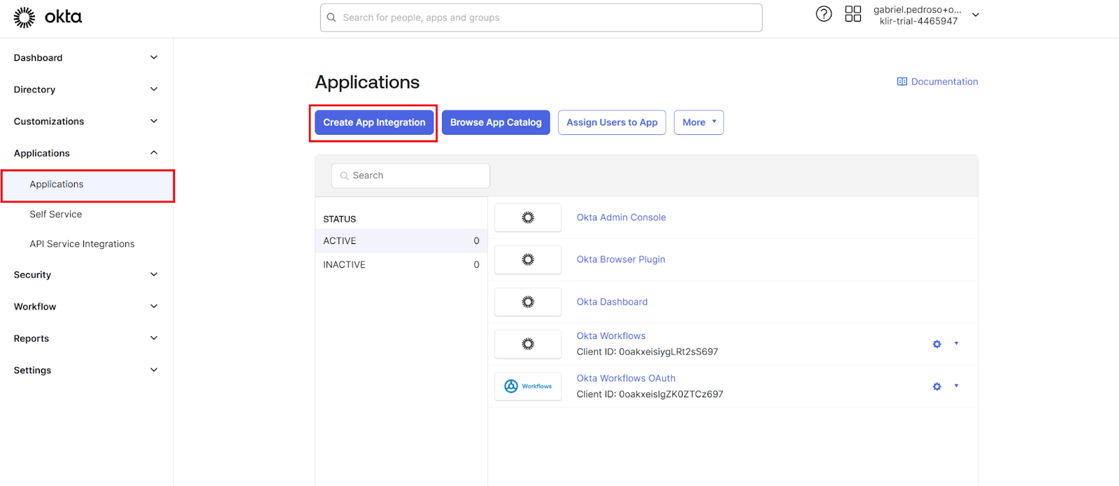 - In the OKTA admin console, go to the Applications section on the left sidebar.