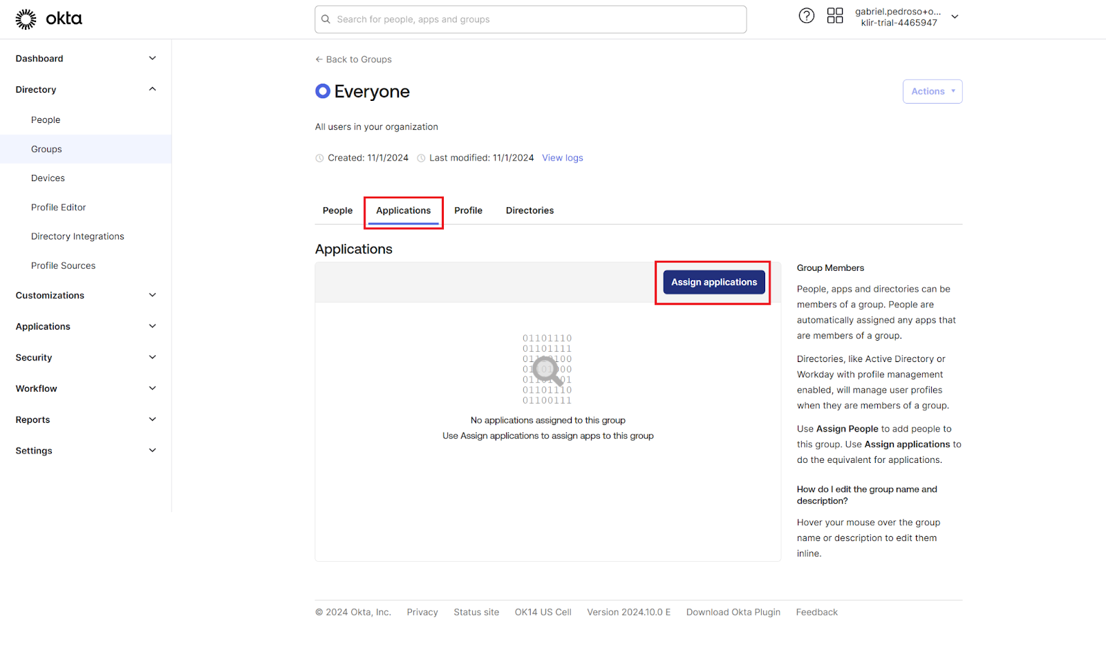 - Make sure to add this new Okta Application to the necessary Groups (same as Step 2 above)