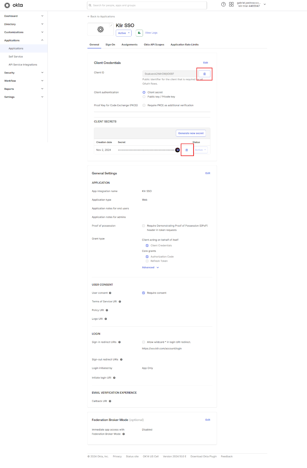 This information is essential for completing the Okta SSO integration with Klir’s system.