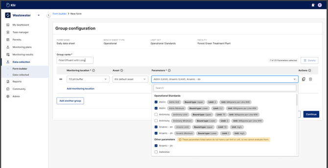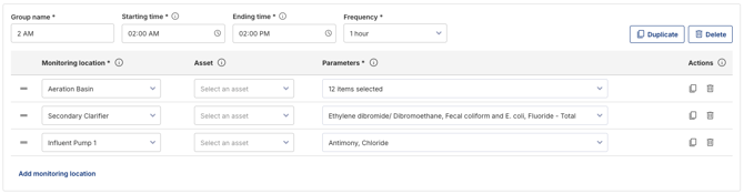 - Select monitoring location(s) and asset(s).