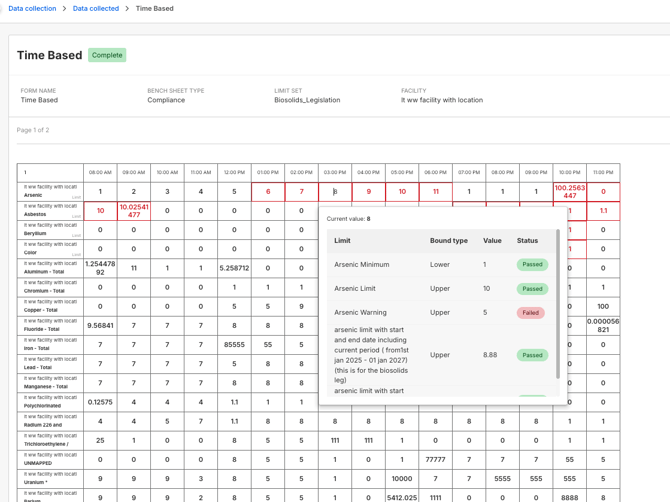 - Required and out-of-limit fields highlighted.