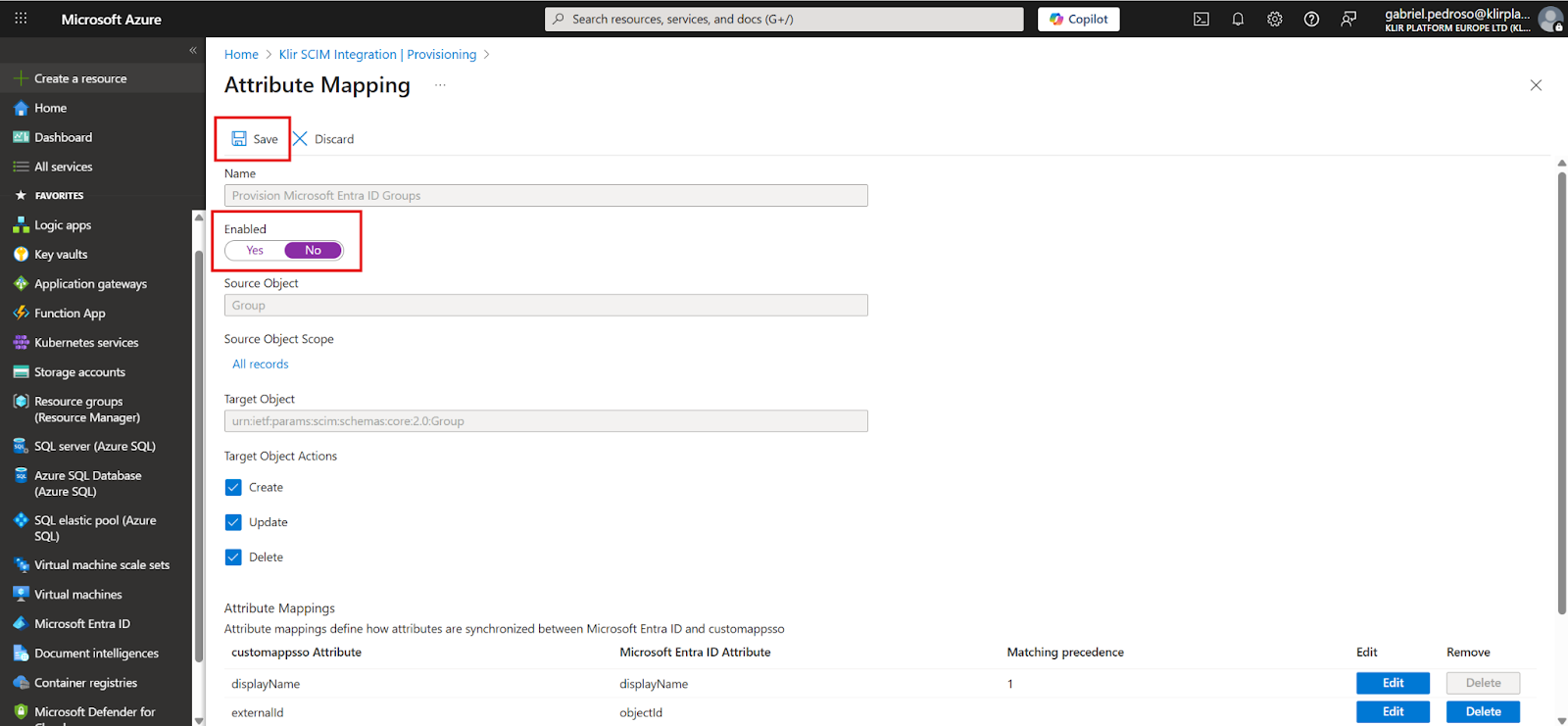 Azure automatically detects SCIM schema attributes, but you can customize them: