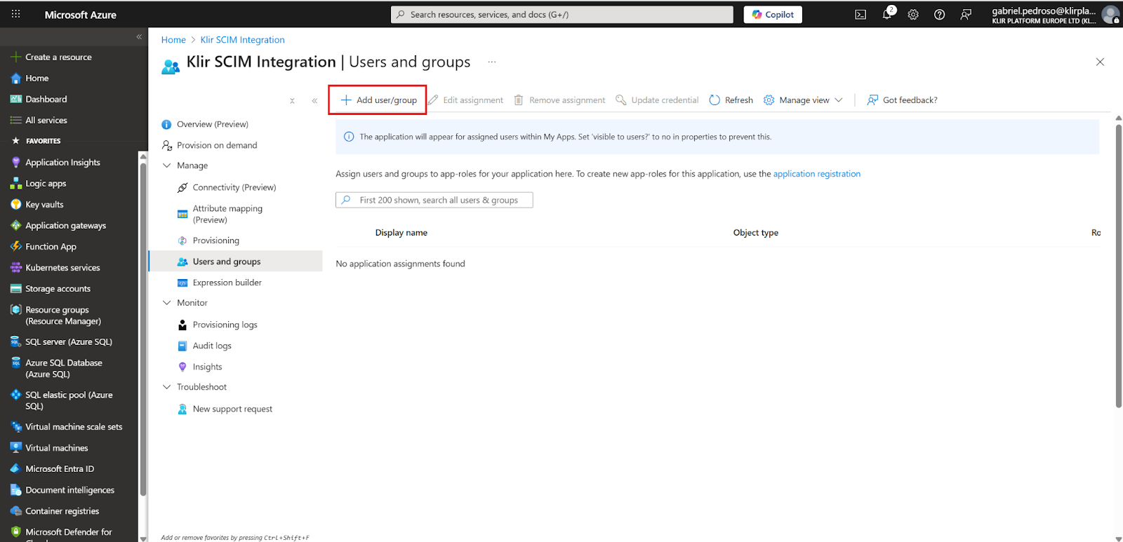 To provide instructions for the technical administrator to configure the SCIM integration to Klir’s system using the Microsoft Entra of the organization (former Azure Active Directory), so the users can be provisioned automatically on the Klir system.